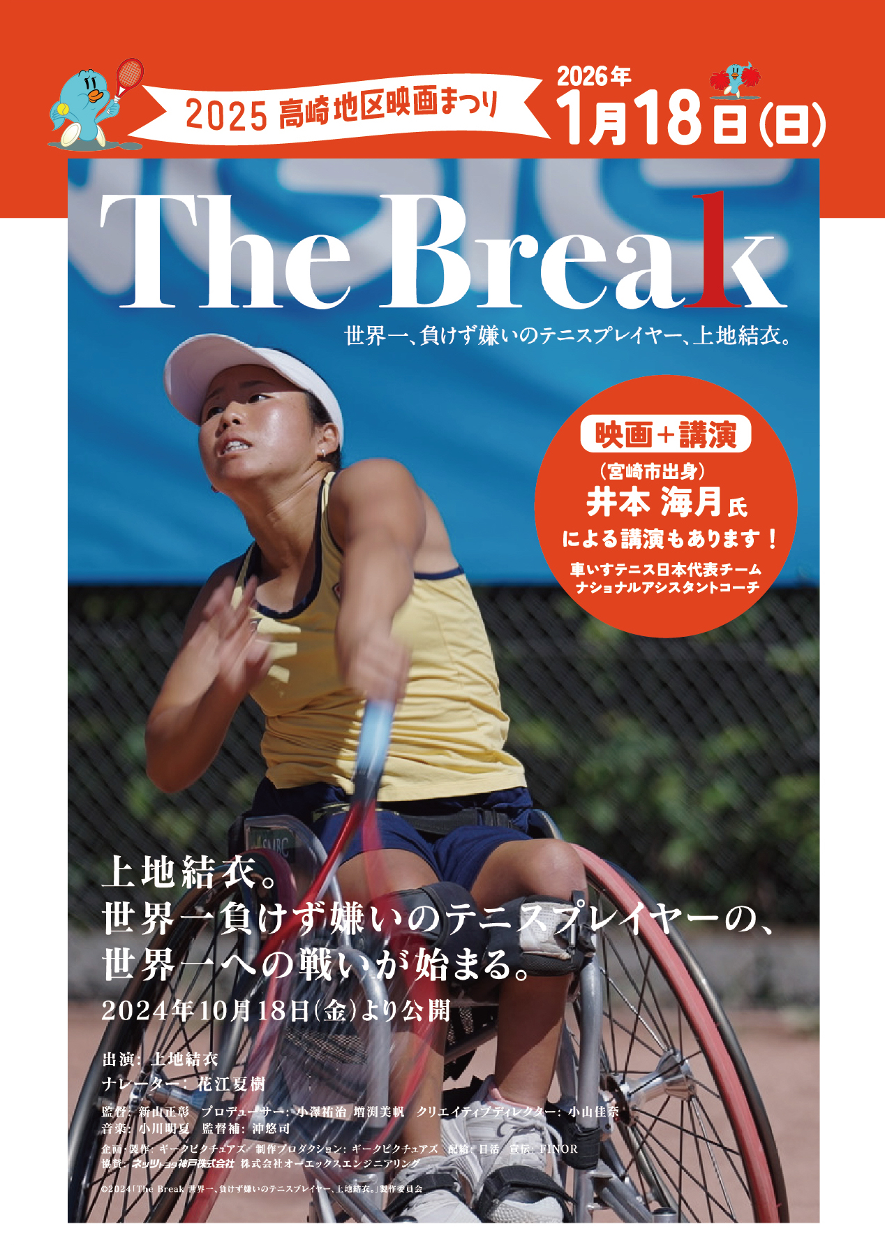 『The Break 世界一、負けず嫌いのテニスプレイヤー、上地結衣。』、2025 高崎地区映画まつりにて上映決定!